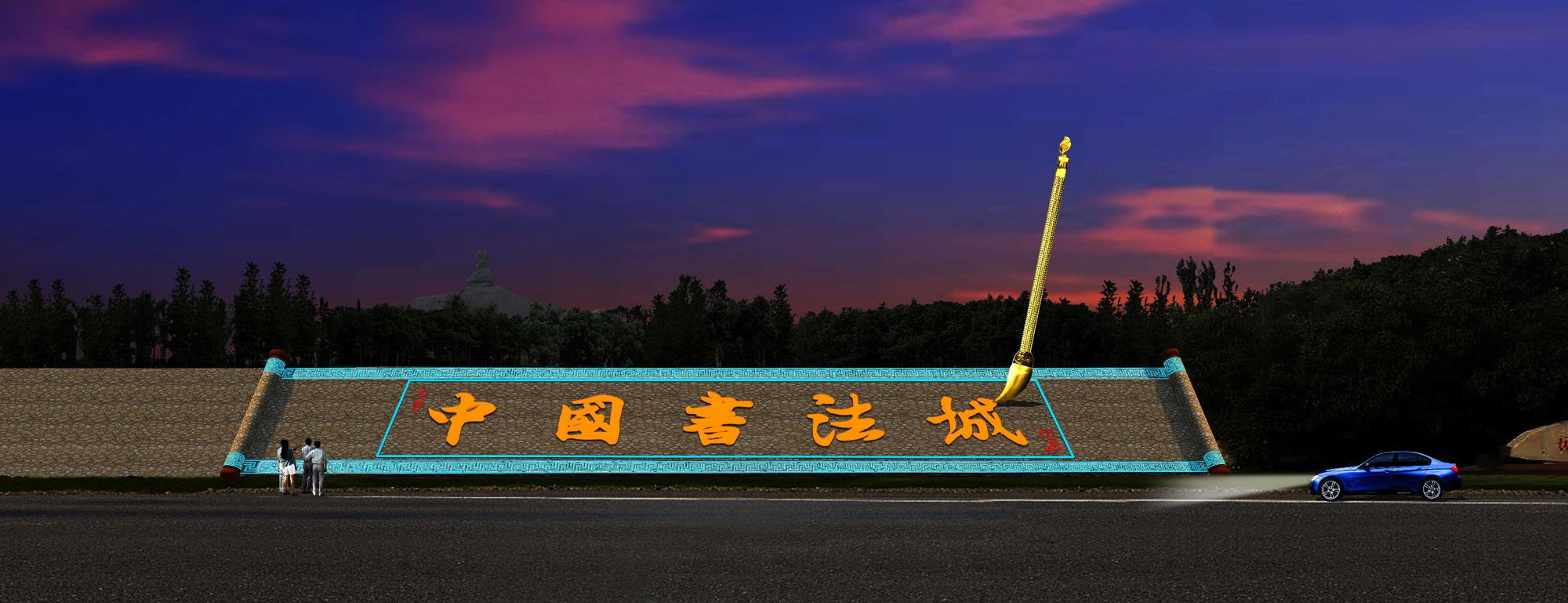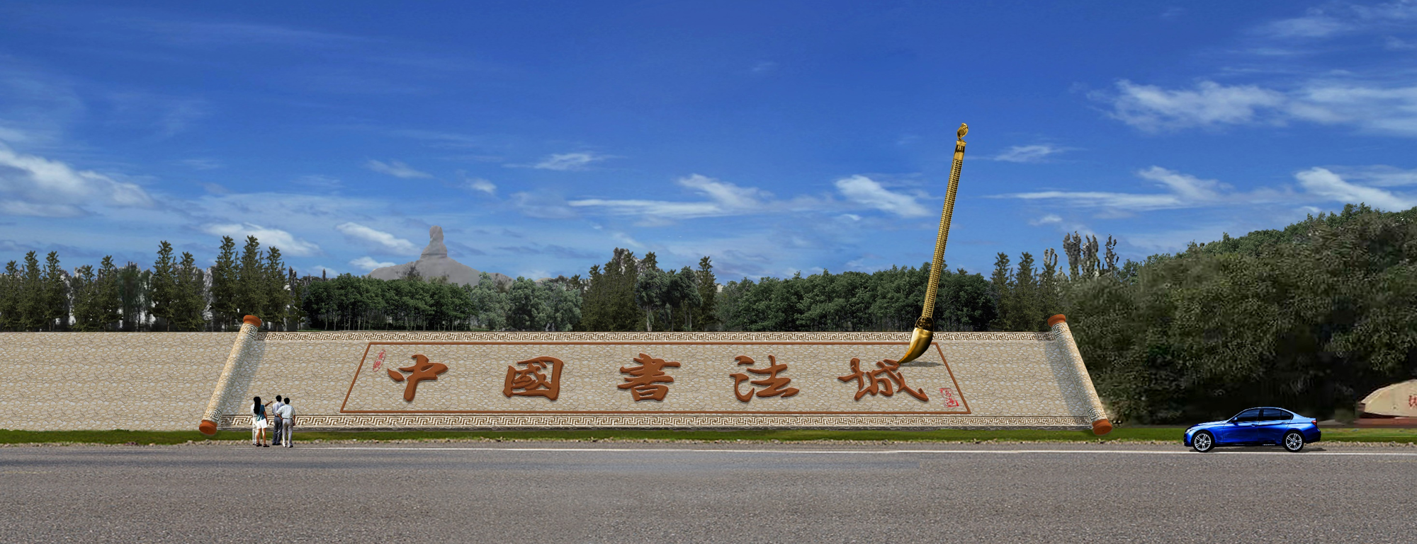 大地雕塑,结合现场地形地貌加以改造,形成一幅巨型书法画轴,书写出中国书法城的城市文化品牌,展现书法城的壮美画卷。